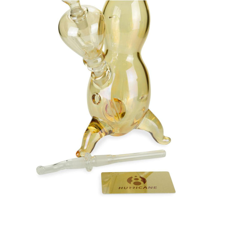 This particular bong is the medium-sized model of the Goldeneye range. Like all of Hurricane's range, this model is made of 100% borosilicate glass and is crafted totally tension free. It has an anti-break system that ensures that the short angles of the corpus stabilise each other mutually, and the lack of protruding parts further ensures that the minimum amount of damage is done if the bong is dropped.