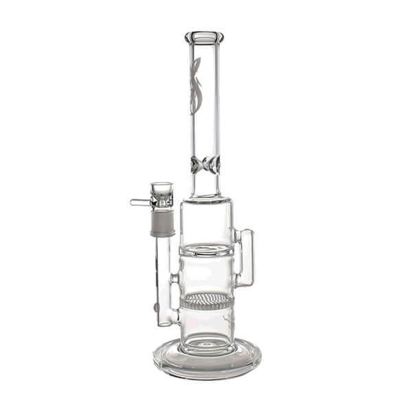 Weed Star have always been known for their quality and have a good reputation for building awesome looking bongs and this Waaaxman bong is no different. It has a fixed vertical downstem which brings the smoke down into the bottom chamber where it is cleaned and cooled by the honeycomb percolator. Honeycombs offer a reasonable amount of restriction but amazing amounts of cooling and filtering thanks to the incredibly tiny holes in them. After that the bubbles climb through the drag squeeze to increase flavor as the temp comes down even further. The final touch is an ice pinch in the top section so you can add a couple of ice cubes if that is your preference. They include an 18.8mm Superbowl with female joint to match the male joint on the downstem.